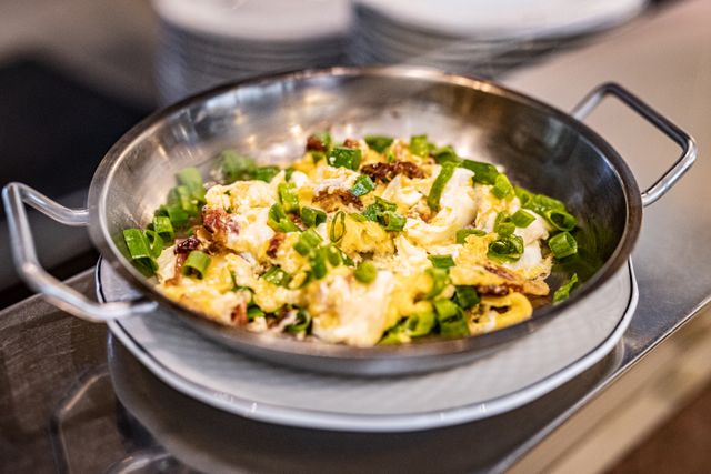 Compose your favorite scrambled eggs or omelet using a wide selection of toppings: bacon, ham, chives, vegetables. The “live cooking” station is complemented by hot dish buffets. You will find classic breakfast dishes and unconventional suggestions for every palate — we invite you to feast in the morning.